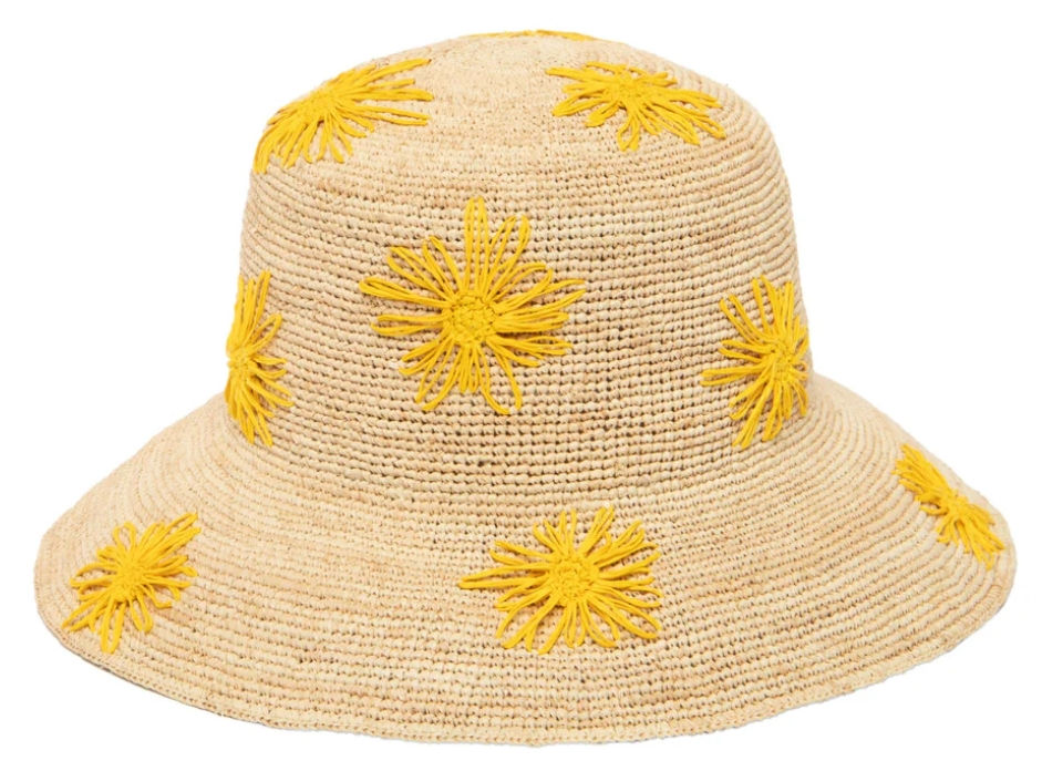 Women's Crochet Raffia Bucket with Embroidered Flowers